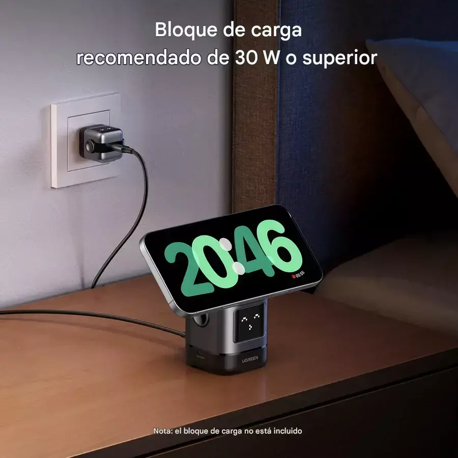 Un accesorio premium que combina tecnología, diseño y funcionalidad. Perfecto para fanáticos de Apple o para quienes buscan una experiencia de carga diferente.