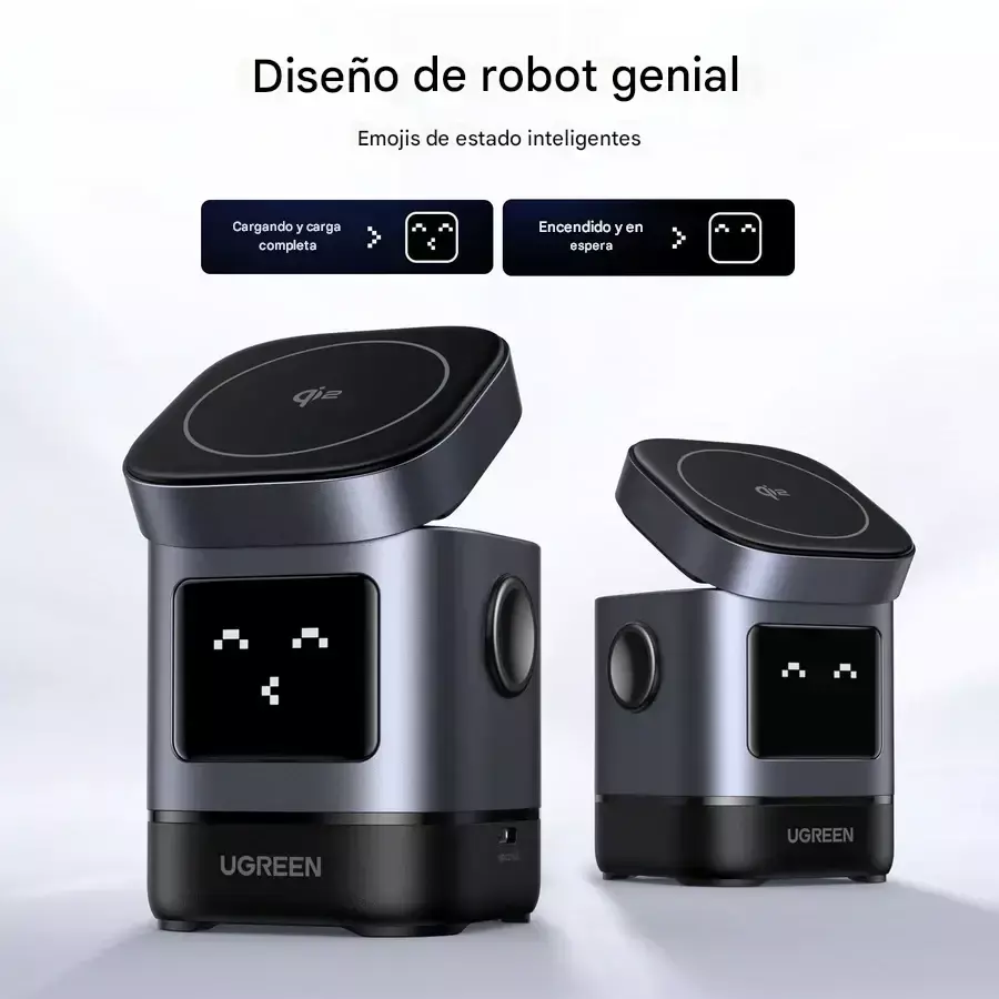 El UGREEN Uno incorpora un diseño creativo con expresiones animadas que cambian según el estado de carga. Una experiencia divertida que transforma un simple accesorio en un objeto con personalidad.