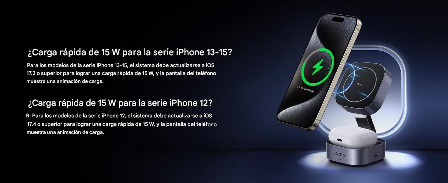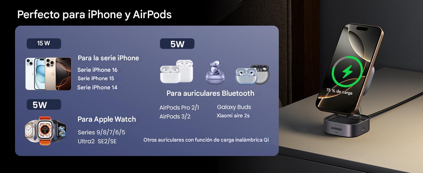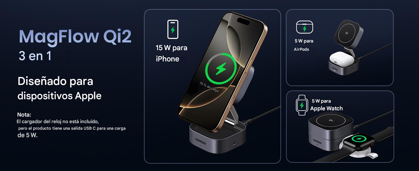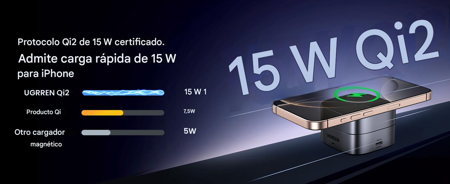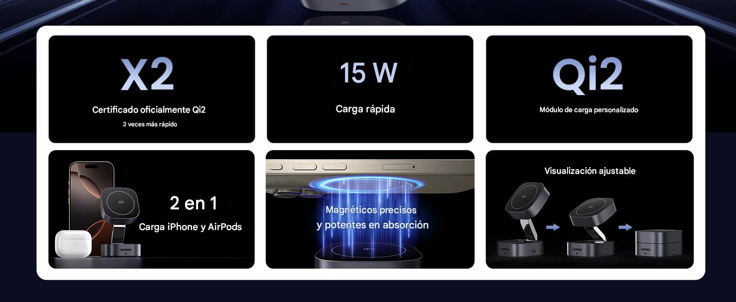 ⚡ UGREEN W702 – Cargador Inalámbrico Magnético 2 en 1 (15W)