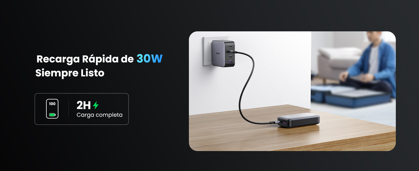 🔌 Carga rápida Power Delivery (PD) hasta 30W vía USB-C