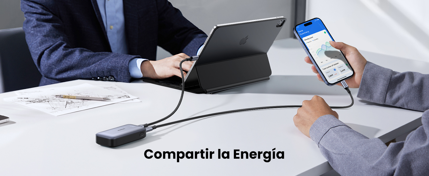 🔋 Doble salida USB-C + USB-A para cargar dos dispositivos a la vez
