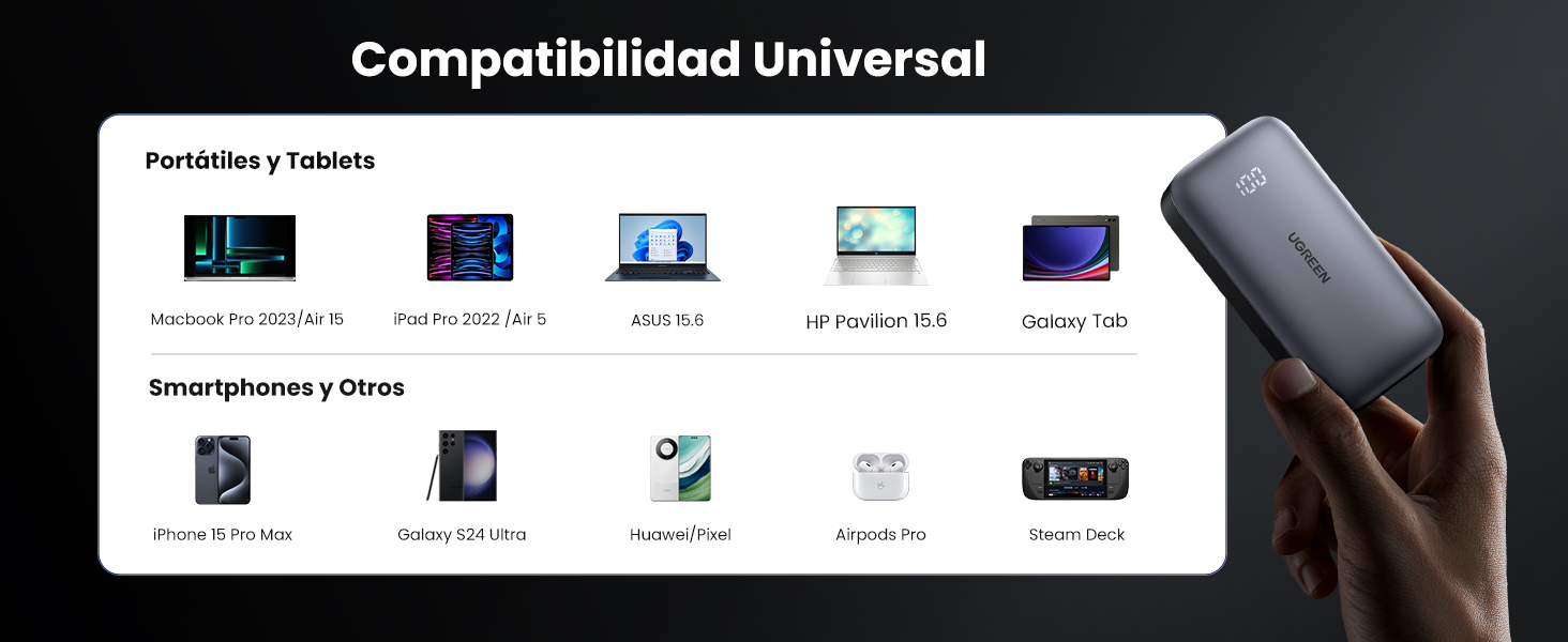 El cargador portátil UGREEN PB502 (25185) es la solución perfecta para mantener tus dispositivos con batería en todo momento. Con 10.000 mAh de capacidad y carga rápida PD de hasta 30W, este power bank compacto es ideal para celulares, tablets, auriculares y más. Su diseño moderno, su pantalla digital y sus funciones de seguridad lo convierten en un accesorio esencial para el día a día.