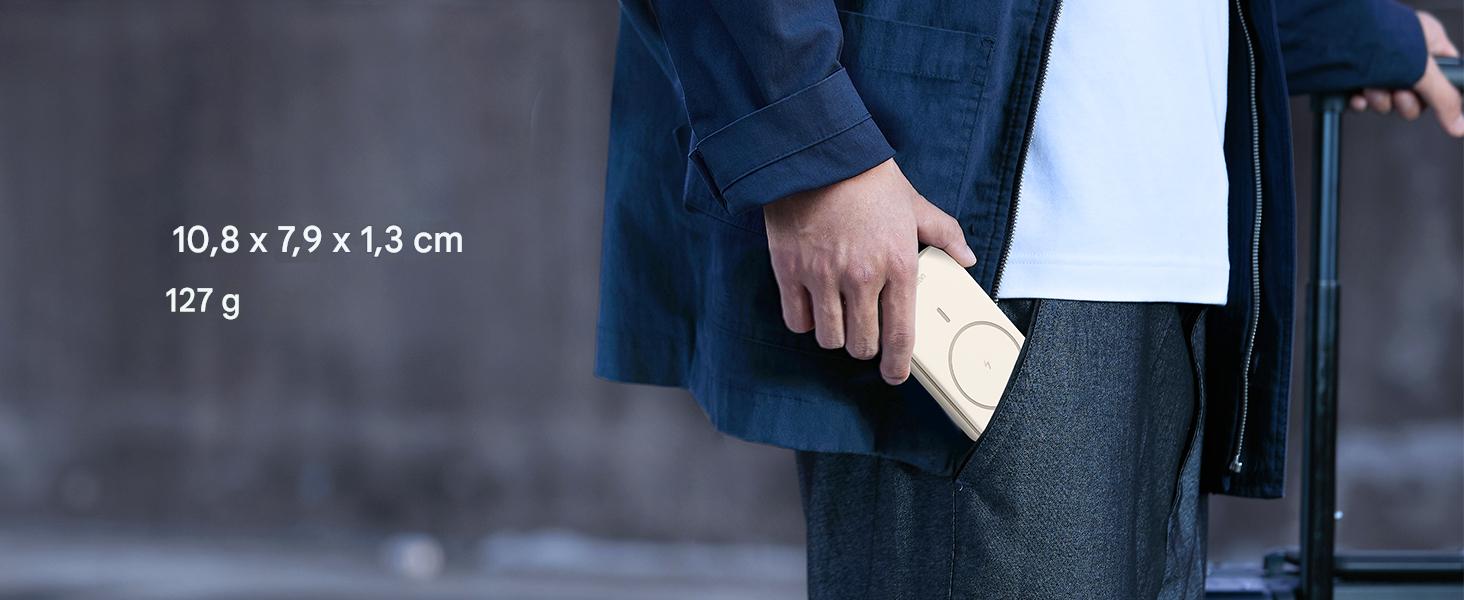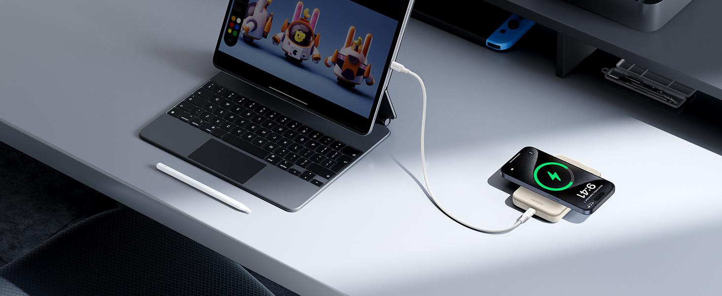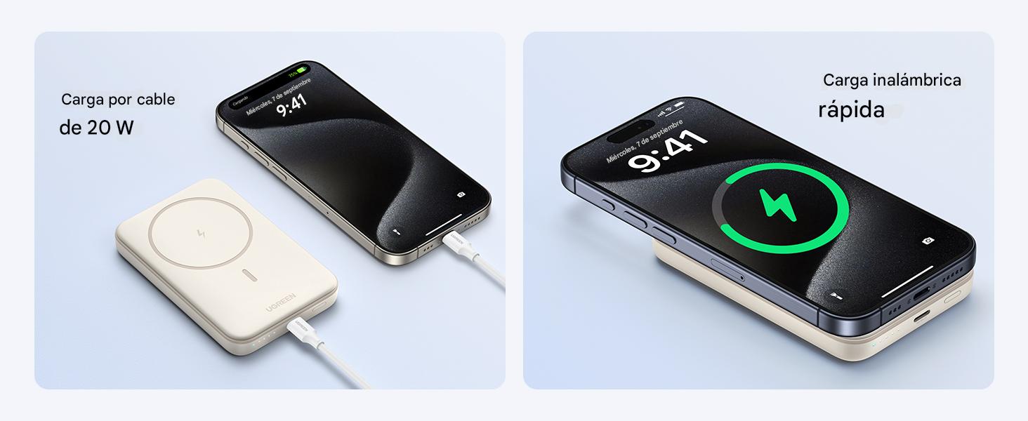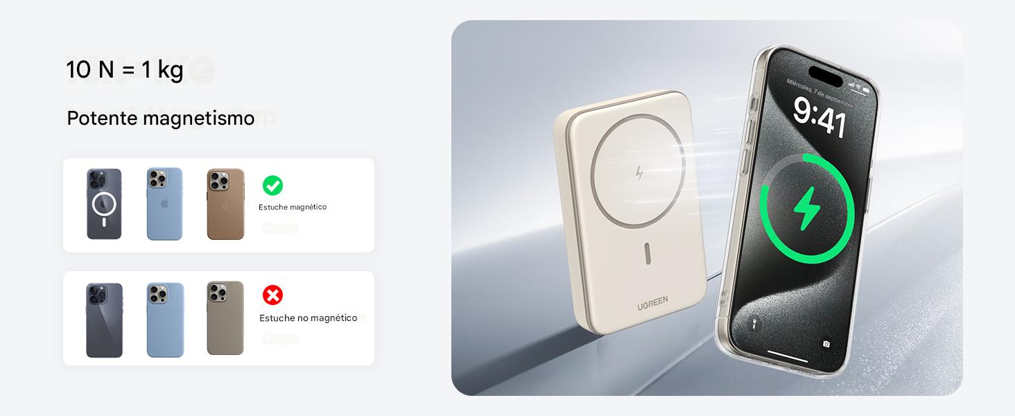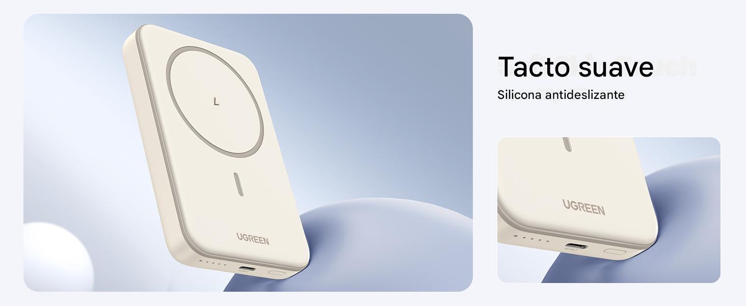 Este power bank magnético de UGREEN está especialmente pensado para iPhone 15/14/13/12. Incorpora un potente imán de 10N que se ajusta de forma segura a la parte trasera del iPhone, sin necesidad de cables. Ideal para videollamadas, selfies o contenido en redes, todo con una sola mano y sin preocuparte de que se deslice.