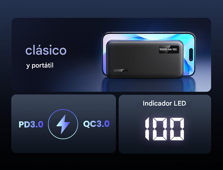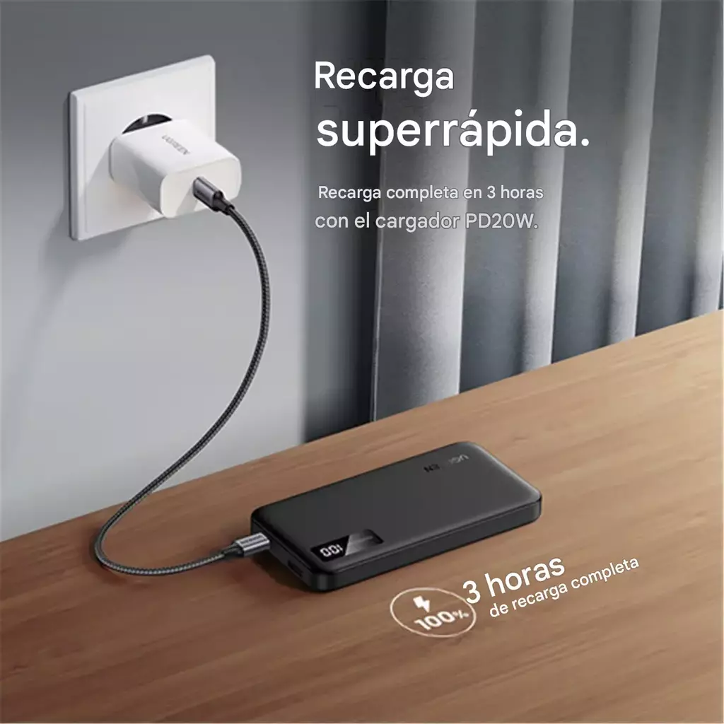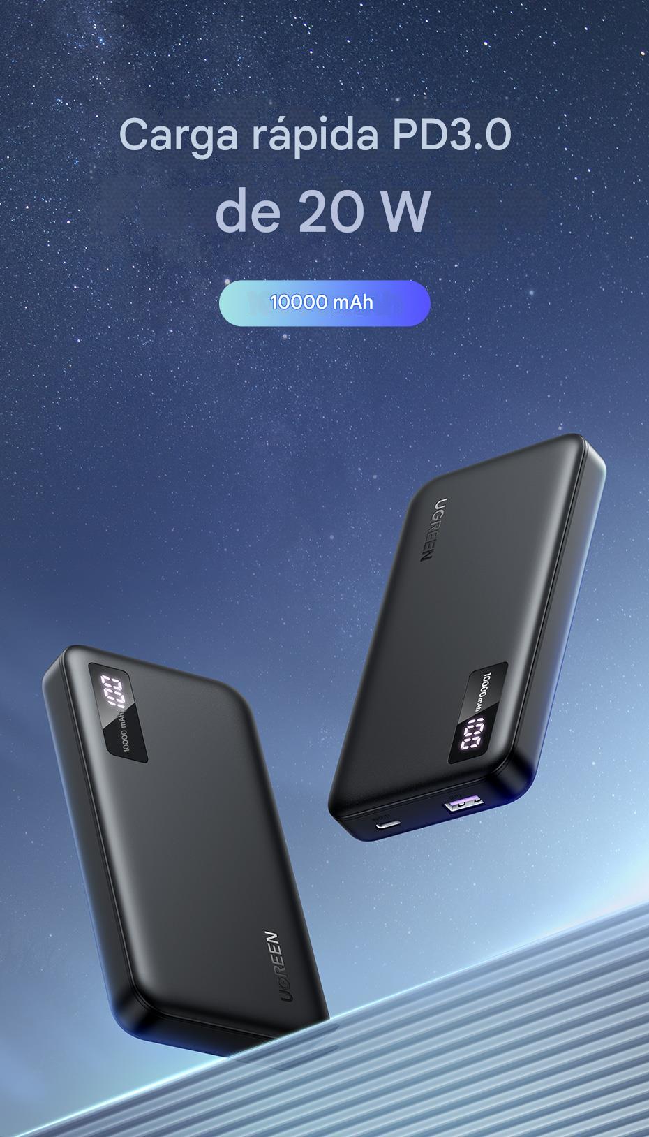 El Power Bank UGREEN 10000mAh PB311 es la solución perfecta para mantener tus dispositivos cargados en cualquier lugar. Con capacidad de carga rápida de 20W, diseño compacto y compatibilidad universal, es ideal para quienes buscan un cargador portátil eficiente y confiable.