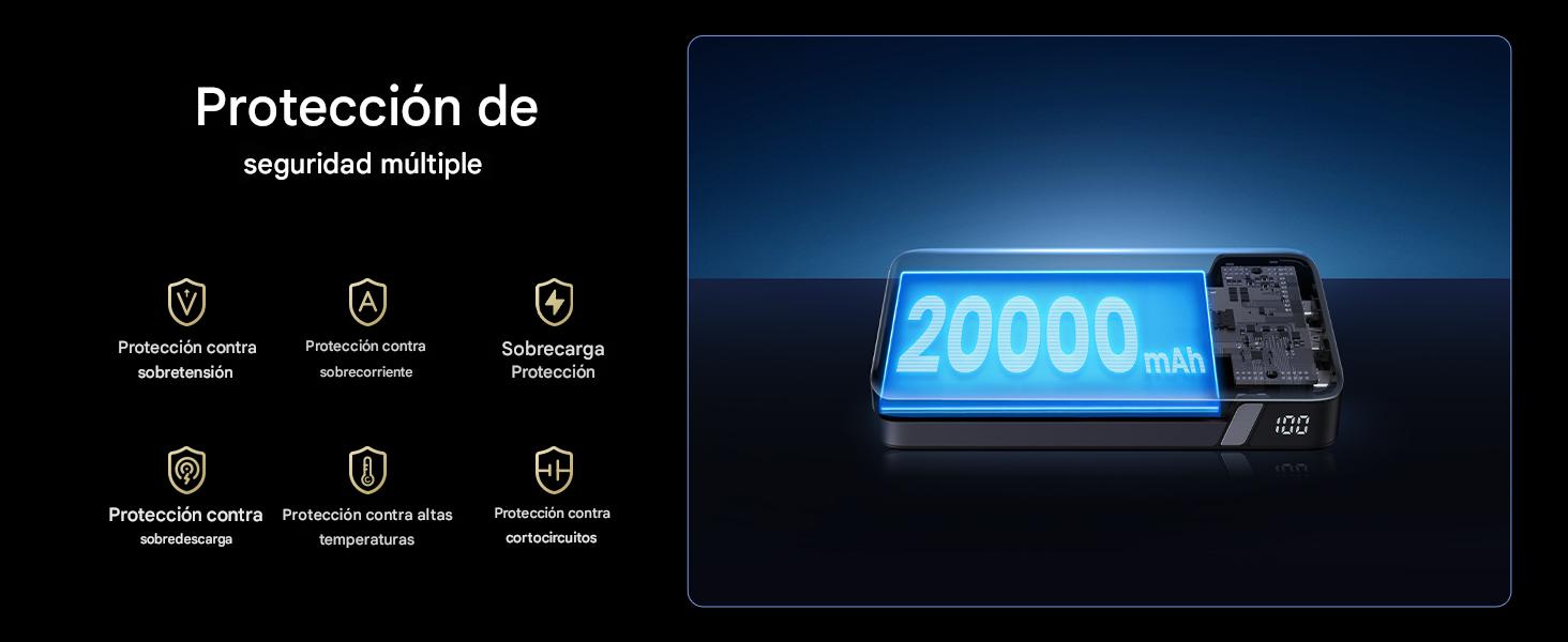 Alta capacidad de 20000 mAh: 5-7 días de duración de la batería, capaz de cargar 4,5 veces un iPhone 15 Pro o 1,1 veces una MacBook Air de 15". La pantalla LED muestra el nivel de batería.