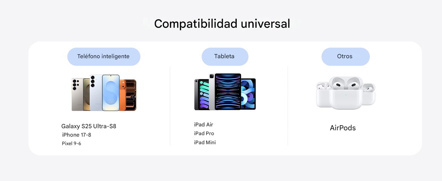 Sistema inteligente de distribución de energía: Un sistema inteligente que reasigna la energía para proteger y prolongar la vida útil de tu dispositivo. Amplia compatibilidad: Amplia compatibilidad con múltiples dispositivos, MacBook Pro, MacBook Air, iPad Pro, iPhone 17 Pro Max/iPhone Air/16 Pro Max/15 Pro Max/14/13, Galaxy S25 Ultra/S24 Ultra/S23 Ultra/S22, Google Pixel 10 Pro XL/9/8/7, Switch, Steam Deck, ROG Ally, Surface, Thinkpad, MateBook y más
