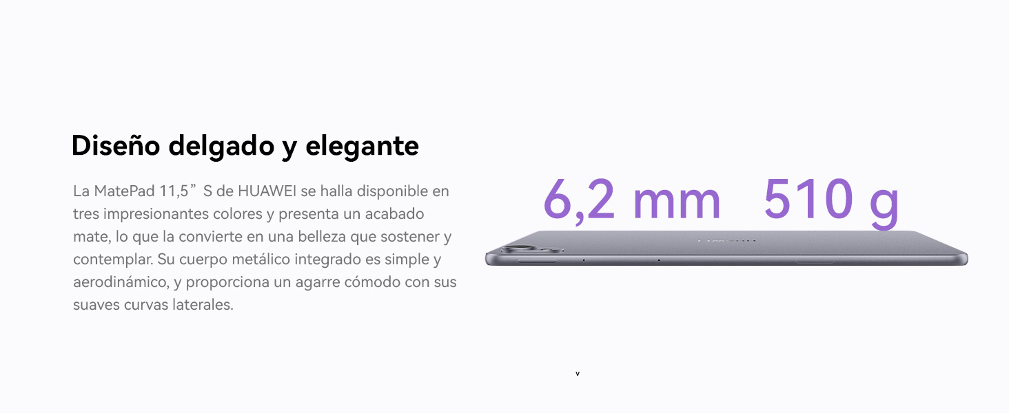 | Componentes incluidos | Charger, HUAWEI MatePad 11.5"S 8+256G AG, Quick Start Guide, Type-C data cable, Warranty card |