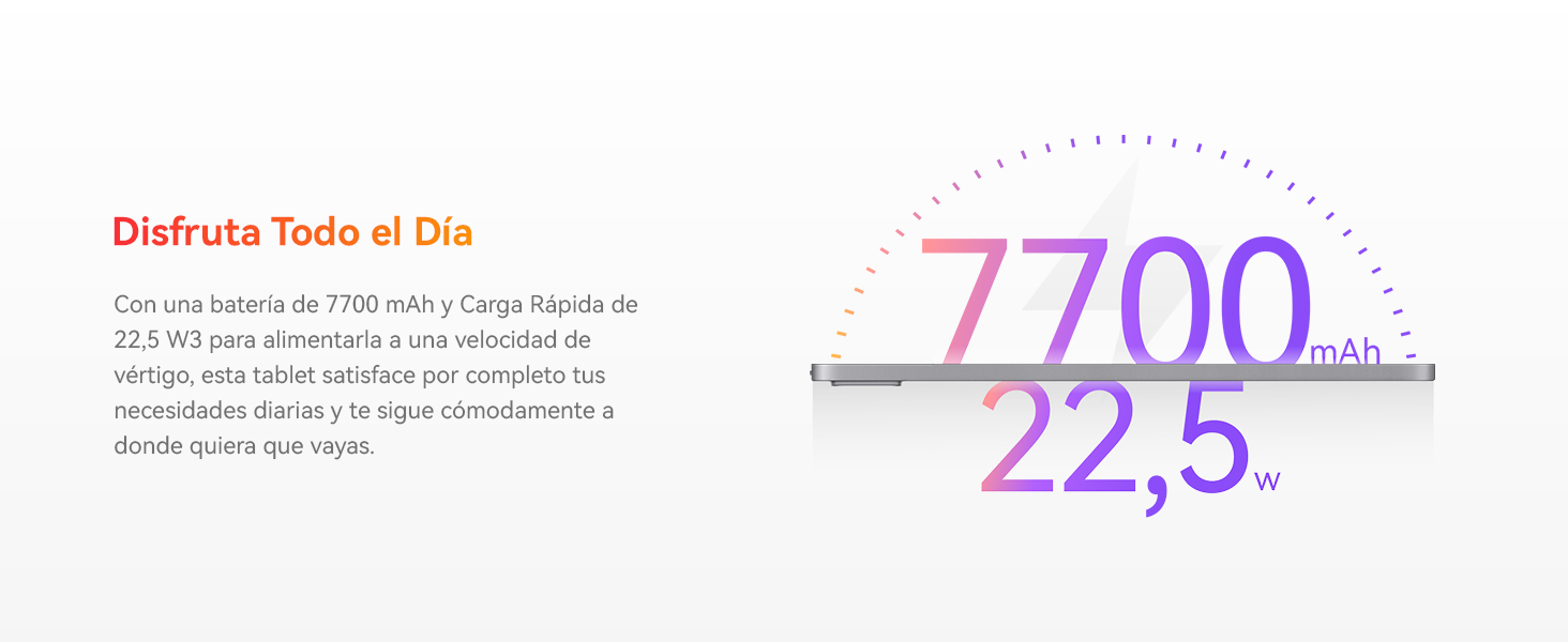 【Batería de Larga Duración】Con una batería de 7,700 mAh y carga rápida de 22.5 W, esta tablet puede satisfacer plenamente tus necesidades diarias y seguir tu ritmo a donde vayas.
